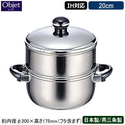 【蒸し器 日本製 燕三条 ステンレス IH対応】Objet 蒸し器 20cm【業務用/家庭用/IH 対応/IH電磁調理器 対応/オール熱源対応/業務用鍋/プロ仕様/調理道具/厨房用品/厨房道具/5年間保証/保温性/蒸し料理/さつまいも/肉まん/あんまん/シュウマイ/温野菜/蒸し物】