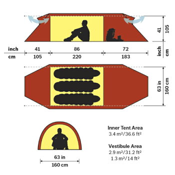 スペースを広くした分、ロングトリップや小さいお子様がいる家族には最適なテントです。