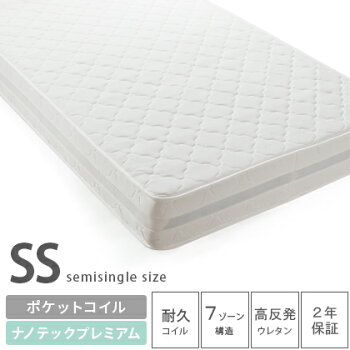 ポケットコイルマットレス マットレス セミシングル 高反発 3Dメッシュ ポケットコイル おすすめ マット 真空圧縮 ベッド 布団 寝具 安心の2年保証 ホテルのベッドのような寝心地 ナノテックプレミアム ポケットコイルマットレス セミシングルサイズ